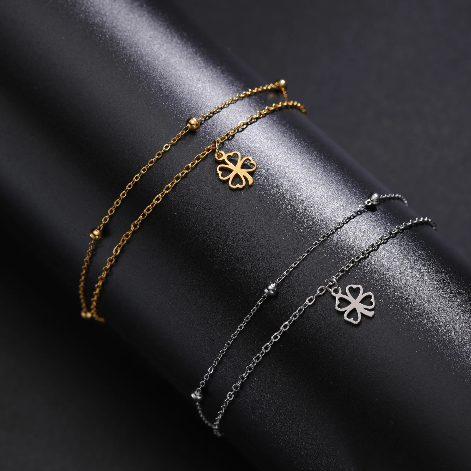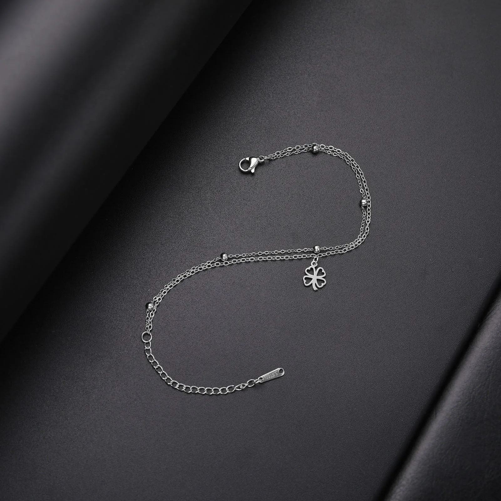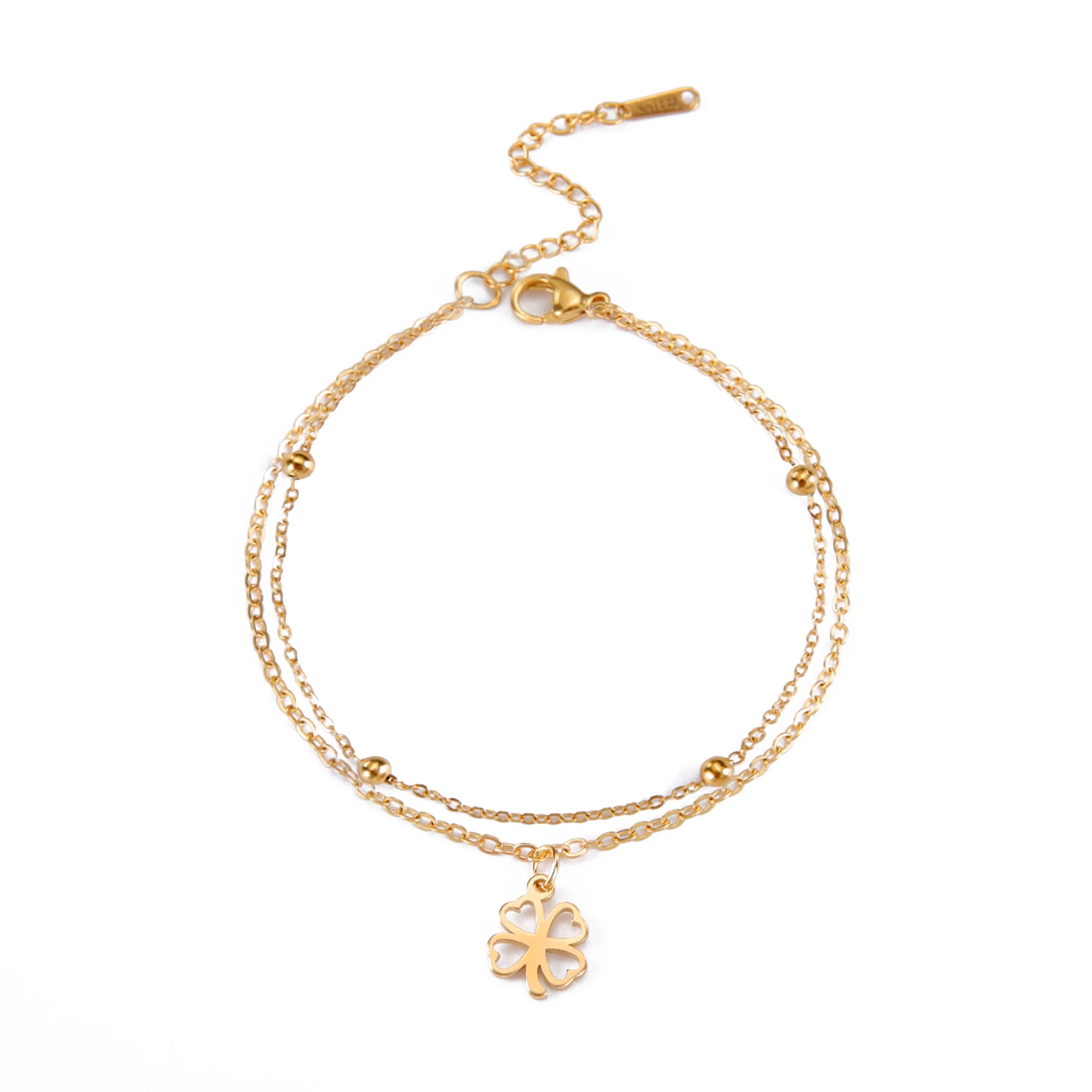 Sipuris Four Leaf Clover Bracelet For Women Stainless Steel Trendy Double Chain Lucky Amulet Pendant Jewelry Christmas Gifts